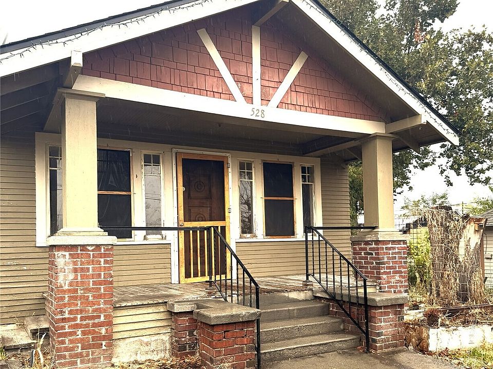 Looking for opportunity, here is a craftsman bungalow style home with an attractive front porch accented by bricks. The home is being sold AS IS and will not finance due to paint and condition, with standard loans. The home offers a small 3rd bedroom or office room, with closet. It needs new surfaces, windows, cabinets, appliances, and more, but seems to be structurally in average condition. There is good alley access parking and the storage shed could and should be removed to create a back yard barbecue area. This is an investor equity builder and a chance to improve in a central neighborhood, close proximity to everything.