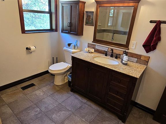 This fantastic 6.06 acre 4-bed/3-bath mountain retreat has top to bottom renovations offering modern comforts amidst stunning views of the Colorado Rockies! From the top, the 400+ square foot master bedroom loft includes an en-suite bathroom featuring a custom double vanity and spa shower with rainfall shower head. Main level boasts a new custom kitchen with tile flooring, elegant cabinets, all new stainless-steel appliances, chic granite countertops, plus walk-in pantry. The kitchen adjoins the dining/living room for ample entertaining space, including 2 new picture windows nestled against roomy window seats for reading, games or sunset viewing. Main level includes a bedroom with gas fireplace and grand bathroom with ample linen storage. Lower level boasts a family room with heated luxury vinyl plank floors, recessed lighting, 2 bedrooms, plus a roomy guest bath. Small studio completes this totally renovated space. New features include furnace, water heater, metal roof, skylights, gutters, picture windows, all new carpeting, spray-foam insulation, air purifying and water-filtering system. The oversized 2-car garage plus a laundry room/work-out room makes this house move in ready!