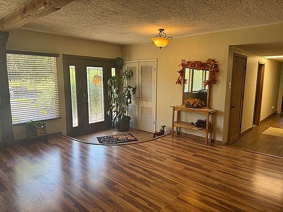 This 6.25-acre property features 3,003 sq. ft. home that was completely remodeled in 2013 and has been updated with brand new carpet this year. The house also contains solar panels and multi head heating & Cooling system in each room. The property also contains 4 other buildings including a large metal building with radiant floors, cooling, a ¾ bathroom and a kitchen. This building is zoned commercial and was used for a plumbing business on one side and a boarding and grooming facility on the other side. The property also features a beautiful, stocked pond with an outdoor kitchen and small cabin. It has a zipline that goes over the pond and has been a highlight for the grandkids. The field is currently planted in max Q grass/ alfalfa mix.