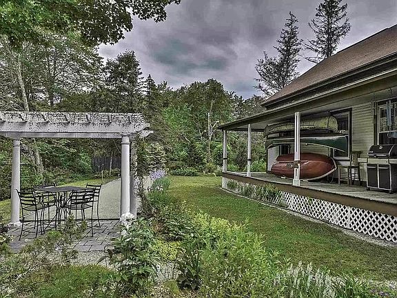 WATERFRONT PROPERTY with 137' of waterfront to swim, fish, paddle, or motorboat out to 85 acre Forest Lake. This well cared for/updated farmhouse is on a level lot with several flower gardens and a berm full of perennial shrubs and trees to shield you from Route 10. The yard is created for fun! A 60' covered porch lets you dine under cover and watch the birds. Venture out into the yard to have dinner on the 12'X12' patio with Roman pergola, and enjoy an after dinner Bocce game on the 75'X10' bocce court. A roman trellis and fencing embrace the kitchen garden allowing you to wander the garden path in peace. The yard is a joy! The updated interior offers a spacious kitchen and open-concept dining room. The south wall of the kitchen/dining room is all glass, with five floor-to-ceiling Marvin windows that let you look out at the lovely garden and water. Included in the kitchen are very unique vinyl plank flooring, a large 2'X3' soapstone sink, commercial gas range with lighted exhaust hood, and solid cheery cabinets. Outdoor activities are plentiful with 13,000 acre Pisgah State Park in town. NH's largest state park has trails for hikers, bikers, horses, ATVs, and snowmobilers. There are two motocross tracks and on the way to Keene is NASCAR's Monadnock Speedway. Keene is home to Keene State College, restaurants, shopping centers, and the Cheshire Fairgrounds. There is a Rail Trail from Winchester to the center of Keene for cyclists. A short drive east is Mount Monadnock, the most climbed mountain in the world. Interstate 91 Corridor offers easy access to Mass., Conn., and New York. The house is a 1860 Cape Cod farmhouse remodeled in 2006 and 2012. The 1,897 sq'ft. home has three bedrooms, office/ den, one bath, kitchen, dining, and bakery/laundry room. There is a one car garage and large attic. The acreage is .289. Businesses have been in the house for the last 40 years.