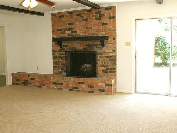 Move-in ready! Spacious home has large open den with fireplace and beamed ceiling. Formal living room and dining room combination across front of house, perfect for second living area or home office. Dine-in kitchen with built-ins and nicely painted cabinets. Freshly painted inside and out, nice flooring, new ceiling fans and fixtures.