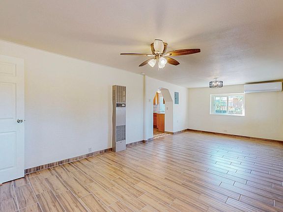 This completely remodeled 3-bedroom, 2-bath home sits on a spacious lot and boasts numerous updates. The entire house has been gutted and rebuilt from scratch, featuring brand-new water and sewer lines, new windows, flooring, stucco, and roof. Both bathrooms have been completely redone, and mini-split systems offer efficient heating and cooling. The electrical panel and lighting have been updated, and the front porch has been rebuilt. The storage rooms are also newly remodeled with fresh stucco and roofing. The kitchen shines with new cabinets and backsplash. All systems, including a new boiler and water heater, are electric, ensuring modern convenience throughout.