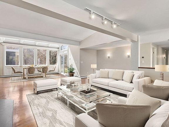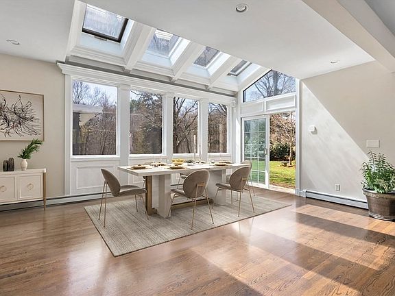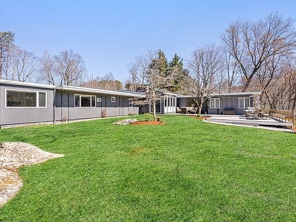 A Mid Century Modern gem on 2.25 acres of lush, private grounds, perfectly sited on the south side of Weston. Sweeping lawns, flowering shrubs, and specimen trees surround this beautiful property. Highlights include a Great Room with stone fireplace and soaring ceilings, adjacent to a sun filled dining room, with walls of glass overlooking the terrace and grounds. A chef's kitchen with center island opens to the family room. The spacious Primary Suite offers a full bath, walk in closet, dressing area, and breathtaking views of the back yard. 4 additional bedrooms, and 2 additional full baths are in a separate wing. 5th BR can also be used as an office. This home is perfect for entertaining and relaxing in an amazing park like setting. Excellent proximity to Weston’s top ranked schools, major routes, conservation land and Wellesley. A unique opportunity to move in and enjoy living in a fabulous location on this rare 2+ acre site. Offers, if any, will be reviewed Sunday 4/23 at 5pm.