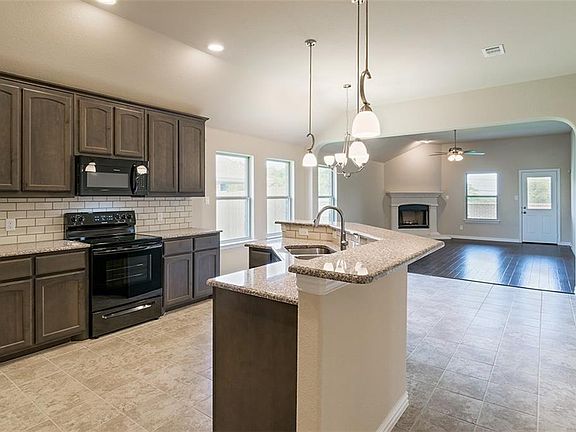 This stunning Havasu plan showcases a country-like front porch, giving you the quiet and rustic feel of the country, while still being in the heart of Azle! With the kitchen boasting dark cabinets, light countertops, and sleek subway tile, this home gives such a luxurious feeling! The dark hardwood flooring in the family room is perfect for any furniture and décor! Schedule your private showing today!