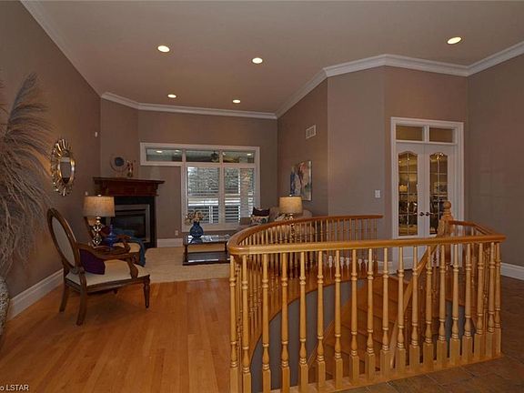 Great location only steps to UWO, this executive ranch is loaded with modern features and great open layout with lots of high ceilings and gleaming hardwood floors. Custom kitchen with quality built in appliances, butler's kitchen and large laundry room. Large covered patio with glass railing. Curved stairs to lower level with bar and walkout.Large main floor family room with wood burning stove and tray ceiling. Loads of pot lights throughout. This is a custom built home with lots of extra features too numerous to list. Within 200 metres of UWO