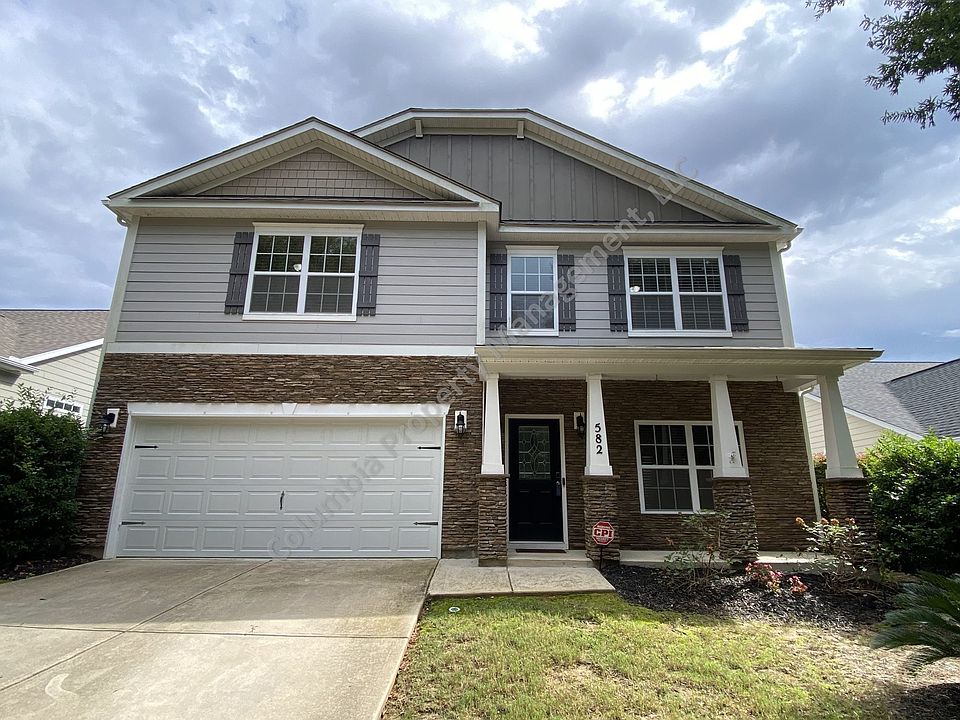 4 bedrooms, 2.5 bath, living/dining room combo, den w/gas log fireplace. Stainless& granite kitchen, refrigerator w/ice maker, gas stove, dishwasher, microwave, pantry & island. Laundry w/washer and dryer units included. Upstairs loft/family room, owner's suite w/cathedral ceiling, separate shower & soaking tub, huge walk custom closet. Patio w/ceiling fan, fenced-in yard w/sprinkler system. 2 car garage and off street parking. Pet restrictions. Tenants responsible for all utilities and yard maintenance. Neighborhood amenities included: pool, tennis courts, fitness center, walking trails, on-site restaurant, and scenic views. 4 bedrooms, 2.5 bath, living/dining room combo, den w/gas log fireplace. Stainless& granite kitchen, refrigerator w/ice maker, gas stove, dishwasher, microwave, pantry & island. Laundry w/washer and dryer units included. Upstairs loft/family room, owner's suite w/cathedral ceiling, separate shower & soaking tub, huge walk custom closet. Patio w/ceiling fan, fenced-in yard w/sprinkler system. 2 car garage and off street parking. Pet restrictions. Tenants responsible for all utilities and yard maintenance. Neighborhood amenities included: pool, tennis courts, fitness center, walking trails, on-site restaurant, and scenic views.
