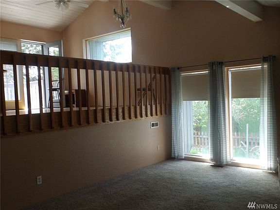 Elegant home at the top of the street and quiet. Large living room has lovely vaulted ceiling & propane gas stove. Home is very well insulated and has a double heat in take system. Master bedroom with en suite bathroom and slider opens onto deck. Family room, two 3/4 bathrooms & 4 bdrms. Kitchen has good sized counter top area with a propane kitchen stove. Yard has a newer sprinkler system, and there is a an finished "14x28" shop/space for hobby room. Two car attached garage. Tasteful home.