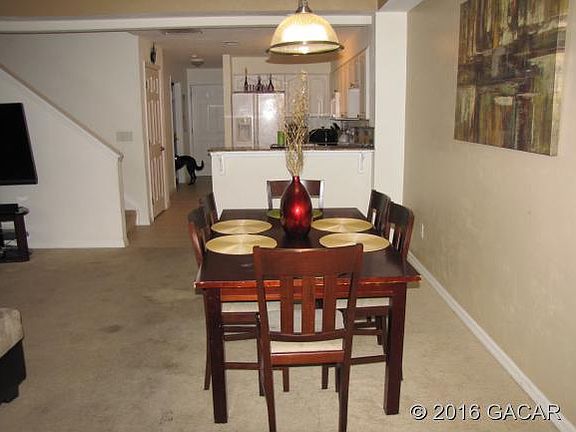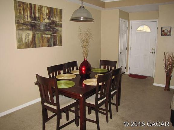 GREAT LOCATION! Convenient to shopping, hospital and just minutes to UF. Beautiful two story condo with double master suites, crown modeling, open floor plan, large laundry room, storage,pantry and half bath down stairs. Upgraded features throughout. $2000 Carpet/Flooring Allowance at closing. Current Tenants lease is up at the end of April.