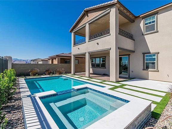 Soak in iconic Las Vegas Strip views from your private balcony in this brand-new 5 bedroom, 3.5 bath luxury rental. Crafted with modern luxury in mind, this residence features a downstairs ensuite bedroom perfect for guests or multi-gen living. Upstairs, the primary suite boasts a private balcony overlooking the Strip, a spa-inspired bath, and generous closet space. Three additional bedrooms, a versatile loft, full bath, and laundry room complete the upper level. The chef's kitchen and open living areas flow seamlessly for entertaining, while the backyard offers a private retreat with a sparkling new pool and spa. With modern finishes, spacious design, and unforgettable views, this home is available now for those seeking high-end Las Vegas living.