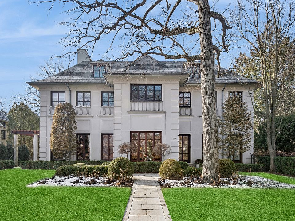 Stunning French Manor house on one of East Kenilworth's most beautiful streets. Stylish and sophisticated, this unique home is perfectly situated near the lake, train, Sears School, and New Trier High School. Luxurious landscaping envelopes the property, highlighted by a serene backyard pool. Expansive marble foyer opens to gracious living room and charming dining room. Dramatic floating staircase. Inviting kitchen with large marble island, fireplace, Grand Palais La Cornue range and table area. Bright sunroom, family room, handsome office and full bath complete the first floor. Second floor includes the primary suite with balcony and 3 more ensuite bedrooms--one with balcony. Third floor offers versatile playroom/lounge area, ensuite bedroom with kitchenette. Lower level exercise room and full bath. An elevator services all four levels, and the attached garage offers parking for 5 cars and EV charging setup. Truly a one-of-a-kind North Shore gem!