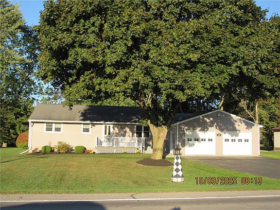 Welcome to 528 Rt -88, a Ranch home in Ontario County, but Newark School district. Are you looking for space? This home has so much to offer, on both the inside and out! From the moment you pull in, you are greeted by a spacious front yard, a large two car garage, and a double-wide paved driveway with a turn around. A large maple tree for shade allows you to enjoy nature's beauty from the front deck. Stepping inside, you will find a large two car garage with epoxy floors, and even equipped with a wheel chair lift. Inside you will find a spacious eat in kitchen with a sliding door leading to an enclosed sunroom where you can enjoy peace and tranquility while being protected from the weather. A modest size living/family room offers a wood stove for a comforting heat on those cold nights. There are two full baths, one off a possible in-law suite that was an add on. A previous bedroom that was converted to a spacious office could be used as a fourth bedroom with some slight modifications. First floor laundry offers loads of space and counter space. Now lets talk about the major improvements. "Ever-Dry" basement was recently installed with 3 battery back up sump-pumps for peace of mind. A new furnace was installed in 2023, central air in 2024, hot water tank in 2025, and the roof is approximately 8 years old. All the major stuff has been completed and awaits you and your family. The large basement offers you opportunities for additional living space possibilities. All kitchen appliances are included for an easy transition. Come take a look and see all this home has to offer. Delayed Negotiations until 11/14 at 2:00pm. Wheel chair lift in the garage is brand new and is not included in the sale, but is negotiable.
