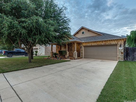 OPEN HOUSE Saturday 9/27 12-3pm! Here it is...the home you have been looking for! Beautifully upgraded one-story home in Cibolo with 4 Beds/2 Baths and 2,147sqft of living space! This thoughtfully maintained home is packed with high-end upgrades inside and out. Enjoy peace of mind with a Class 4 impact-resistant roof featuring a solar exhaust fan, a full gutter system, and elegant flagstone front and back porches. The exterior also features programmable Gemstone eave lights, a drought-tolerant Zoysia lawn with updated irrigation and sprinkler heads, plus a 10x8 crushed granite pad for trash and recycling bins. Step inside to find modern comforts including a Smart Nest thermostat, Ring cameras (front and back), window security sensors, a massive 70" ceiling fan in the living room, updated pendant and track lighting, and a stylish 5-panel frosted glass door in the front bedroom, which also features new waterproof laminate flooring. The kitchen is a chef's delight with granite countertops, stainless steel appliances, pull-out lower cabinet slides, a custom Elfa pantry system with spice racks and drawers, and an under-cabinet wine glass holder. Additional features include overhead garage storage, a dedicated laundry room with a fold-down table, and a covered back patio with ceiling fan and remote. This home is truly move-in ready! Blending comfort, style, and smart upgrades in one perfect package! Come and see this one of a kind home today!