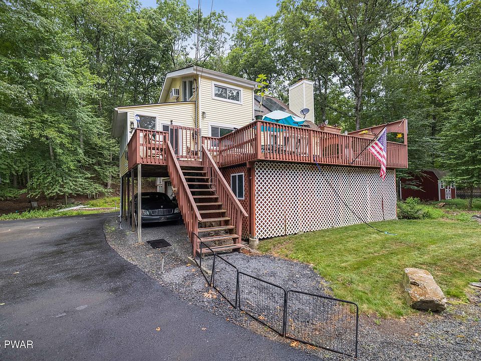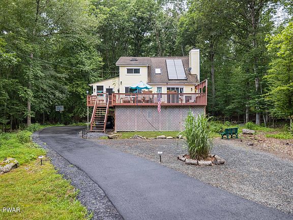 Welcome to this well-maintained contemporary-style home nestled in the desirable Saw Creek Estates community. This well-proportioned 3-bedroom, 2-bathroom property features a bright and open layout with a cozy loft overlooking the main living area. Enjoy the warmth of a fireplace, the charm of a 4-season room, and step outside to a large deck perfect for entertaining.The home offers a one-car garage plus an additional carport, an unfinished partial basement ideal for storage, and solar panels for clean, renewable energy and lower utility costs. Located in a quiet cul-de-sac, it's just a short walk to a peaceful creek--perfect for relaxing strolls.Saw Creek Estates is packed with amenities, including indoor and outdoor pools, tennis and basketball courts, a clubhouse, playground, lake and beach access, and even ski access in the winter. Residents also enjoy a gym, and the popular Top of the World restaurant, located right within the community.Whether you're looking for a full-time residence or a weekend getaway, this home offers comfort, convenience, and incredible community perks. Don't miss this opportunity!