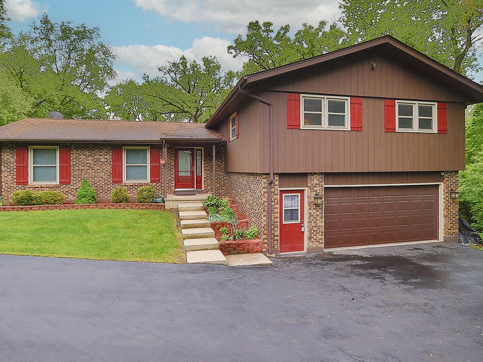 You will feel like you are in the northern Wisconsin! Four levels of impressive living both inside and out ~ Nestled on a spacious double lot, surrounded by a tranquil creek and lush wooded backdrop ~ Formal living and dining rooms ~ Spacious eat-in kitchen with SS appliances including a microwave/air fryer(2022), lots of countertop space, walk-in pantry ~ Bright eating area with access to the deck for outdoor dining~ Retreat upstairs to find four bedrooms, including a master bedroom with dual closets and a private bathroom, providing ample space and comfort and spacious secondary bedrooms. Relax in the lower level family room, complete with a cozy wood-burning fireplace and doors to the backyard. The finished basement features a full bathroom, wet bar, and ample storage space. Outside, enjoy the utmost privacy and gather around the firepit for memorable evenings under the stars. Experience the serene ambiance of this Northwoods setting, all while being conveniently located near Interstate 90 and shopping amenities. Recently updated with fresh paint and new carpeting - Don't let this opportunity slip away! Roof (2015) Stove, Refrigerator (2016), Dishwasher(2022)