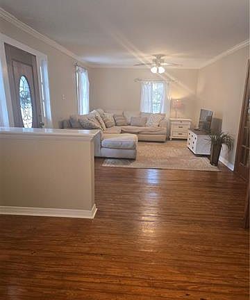 CHARMING 2BR/2BA ACADIAN STYLE HOME IN THE HEART OF COVINGTON CONVENIENTLY LOCATED CLOSE TO ST. TAMMANY HOSPITAL, SCHOOLS, SHOPS & RESTAURANTS! A beautiful white picket fence surrounds the property that includes a spacious yard on a corner lot measuring 60 x 140. The covered front porch is welcoming & the perfect space to relax & unwind from a busy day. The backyard deck offers a great space to entertain or a perfect garden spot. The interior of the home is gorgeously renovated with hardwood flooring, crown molding, neutral paint colors, & attractive ceiling fans & lighting. Lots of windows are available for natural light with faux wood blinds & sheer window treatments. The home offers an open & versatile floor plan with a living/dining area at the front of the home with french doors that lead to a hallway with 2 bedrooms, 2 baths & ends with the kitchen & den at the back of the home. The kitchen boasts granite counters, white cabinets, stainless steel appliances & pantry. All appliances are included with gas range/oven, dishwasher, microwave, refrigerator, & washer/dryer in separate laundry room. Partially furnished with living room furniture & furniture storage pieces. Front driveway parking can accommodate 2-3 cars. 2nd floor apartment is currently rented & has separate outdoor entrance. Available for move-in on October 1st!