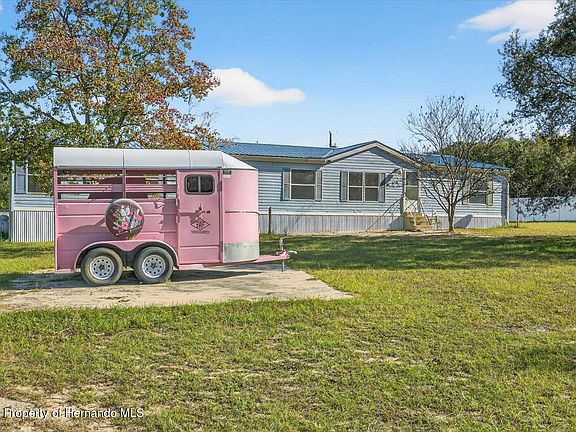 Discover your own private retreat on this spacious 1-acre property nestled in the peaceful agricultural community of Spring Hill/Brooksville. This beautiful 4-bedroom, 3-bath double-wide manufactured home offers plenty of room for family, guests, and entertaining — all surrounded by serene country charm. Equestrians and hobbyists will love the horse barn with tack room, perfect for storing saddles, feed, and gear, plus a tool shed to keep your equipment organized. The property provides ample space for gardening, animals, or simply enjoying the quiet outdoors under wide-open skies. The home itself features an open and split floor plan with a comfortable living area, a spacious kitchen, and large windows that fill the space with natural light. With four generously sized bedrooms, there's room for everyone to spread out and relax. The metal roof was replaced just 6 years ago, offering peace of mind and lasting durability. Located in a quiet, agricultural neighborhood, you'll enjoy the tranquility of rural living while still being just a short drive from shopping, dining, and major roadways and the Suncoast. Whether you're looking for a place to bring your horses, start a small homestead, or enjoy peaceful country living — this property has it all!