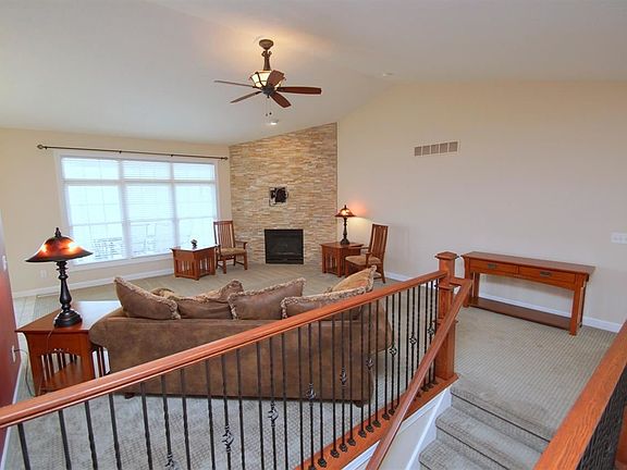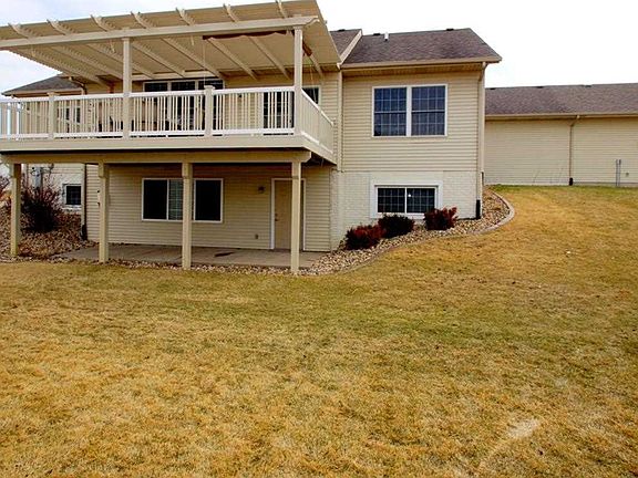 Bettendorf Iowa Real Estate For Sale! Fantastic Four Bedroom Four Car Garage with Gorgeous Great Room and Wonderful Walk-Out Lower Level that Features Fun Family Room, Game Room, Second Gas Log Fireplace, Fourth Bedroom, Third Bathroom, Den/Office, Storage Area with Shelving, and Kewl Kitchenette! Really Nice Ranch with Split Bedroom Floor Plan for Private Master Suite with Walk-In Closet, Tray Ceiling, Wonderful Whirlpool Tub, Twin-Sink Vanity, and Short Step-In Shower Stall! New Poured Concrete Edging around Landscape Beds and New Vinyl Deck and Pergola! TMI Home Warranty! Awesome!!!