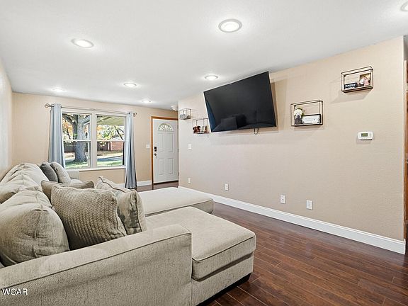 Fenced-in backyardBar areaDecorative fireplaceBright sunroomFresh flooring