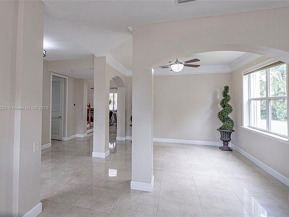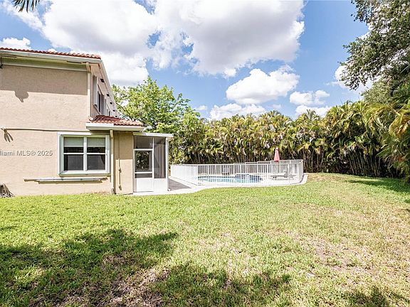 Spacious 6-bedroom + den, 3 bath pool home with a 3-car garage. Perfect for families and entertaining, this home is near top-rated A+ schools, shopping, and major highways. The master bedroom offers two walk-in closets. The upgraded kitchen features wood cabinets, granite countertops, and stainless steel appliances. The first floor has Spanish porcelain floors and 8-foot doors. Smart home technology includes switches, smoke detectors, thermostats, and Ubiquiti Wi-Fi. Enjoy a private backyard with a screened-in lanai, heated saltwater pool, and jacuzzi. Accordion hurricane shutters ensure added safety.
