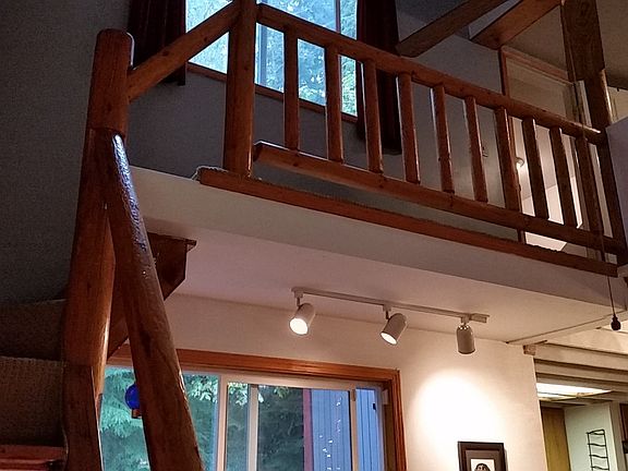 This beautiful home is located on 3.5 acres on a private cul de sac. Nestled in the forest, this property has multiple structures making it a wonderful retreat opportunity, including detached garage, hot tub, storage shed and newly constructed guest cabin/art studio with Airbnb potential. Remodeled bathroom with Italian tiles, limestone sink and walk-in shower. New wood floor in living area and updated master bedroom. Spacious 15x17 ft cedar deck is ideal for BBQs and entertaining. Contemporary architecture with efficient design makes this home very comfortable. with features like a Lopi wood stove, high speed internet, all appliances stay- high efficiency washer/dryer, stove, microwave and refrigerator. Unique to homes in this area, the house has 215ft well and its own septic system. Live here full time or make it your mountain retreat! Close to skiing, hiking, and other outdoor activities.