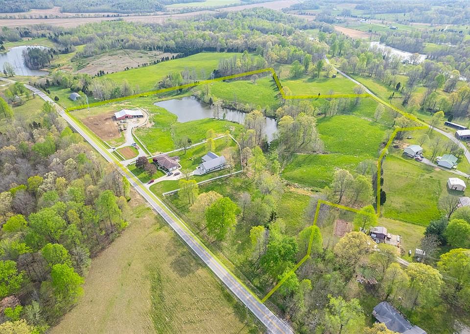 Welcome to your dream home nestled on 20 sprawling acres of picturesque countryside! This charming brick ranch boasts 3 bedrooms and 2 bathrooms, offering comfort and space for the whole family. As you step inside, you're greeted by the warmth of the inviting living space - and that is just the beginning. Step outside onto the covered patio and take in the breathtaking views of your own private 2-acre lake, where tranquil moments await. Imagine lazy afternoons spent fishing or simply soaking in the beauty of nature. For those with equestrian interests , there are 4 horse stalls with a feed room. The barn equipped with electric and water provides endless possibilities. Whether you're housing livestock or storing equipment, this versatile space is sure to impress. But the amenities don't end there. A remarkable Amish-built building on the property offers unparalleled potential. With drywall already hung, electric wiring in place, and even a bathroom, this space is just waiting for your personal touch to transform it into the ultimate retreat. Featuring heated concrete floors and solar panels, this building encompasses three levels of spacious living. The main floor boasts 1710 square feet of customizable space, while the upstairs offers an additional 1036 square feet, perfect for a home office, studio, or guest quarters. Below, the basement provides 1616 square feet of storage or recreational space, limited only by your imagination. Conveniently, a 3-car attached garage provides ample parking and storage, ensuring that both vehicles and belongings are well-protected. Don't miss your chance to own this remarkable property!