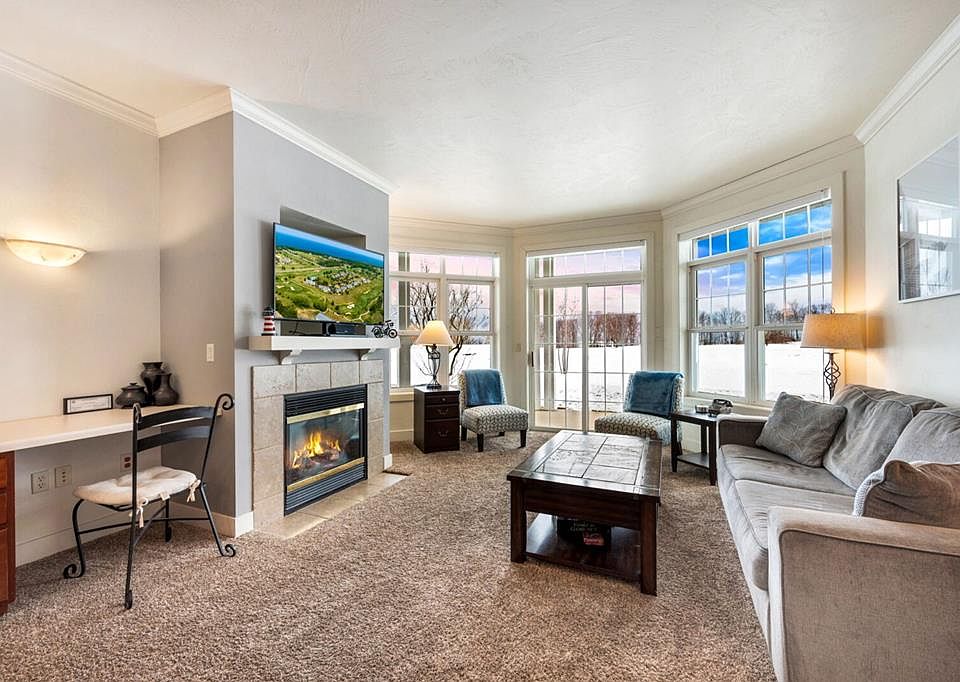 Lower End 2 bedroom (King Beds) 2 bath condo. Picturesque Westerly sunset views over the horizon & #10 tee of HSB Golf Course. Comfortable living spaces including an outdoor patio. Full kitchen w/breakfast bar. Primary Ensuite w/patio access, whirlpool & walk in shower. 2nd Bdr Ensuite w/tub/shower unit. Living room w/gas log fireplace. New furniture, ceiling fans, window treatments & dishwasher (all less than 4 years old).Desirablelocation with steady rental income or enjoyas your Door County get-a-way. Offered fully furnished. Minutes from Murphy Park's sand beach & the village of Egg Harbor. Internet/TV - DC Broadband.
