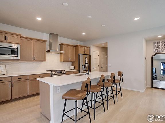 This beautifully maintained home offers a perfect blend of luxury, comfort, and low-maintenance living. It comes with Pre Paid HOA dues for the first year, as well as Lender incentives with our preferred lender. Please call agent for details. The professionally designed side yard features $20K in landscaping upgrades, including artificial turf, decorative rock, shrubs, hardwired lighting, and a full drip line and sprinkler system-completely maintenance-free.Inside, you'll find an upgraded kitchen with a dual fuel range, upgraded flooring throughout, and vaulted ceilings both on the main level and in the spacious primary suite. Enjoy stunning mountain views from the living room and primary bedroom, enhanced by upgraded Clearview blinds for a modern touch.Additional highlights include a Ring security system throughout for added peace of mind, an Oversized garage for your convenience, and an unfinished basement with 8-ft ceilings offering great potential. Located directly across from open green space and in a growing community with amenities like a pool, pickleball courts, playground, and splash pad-this move-in ready home checks every box.
