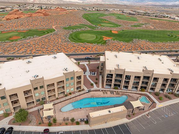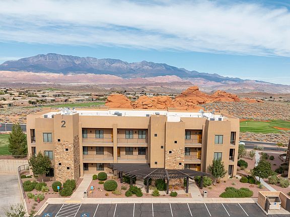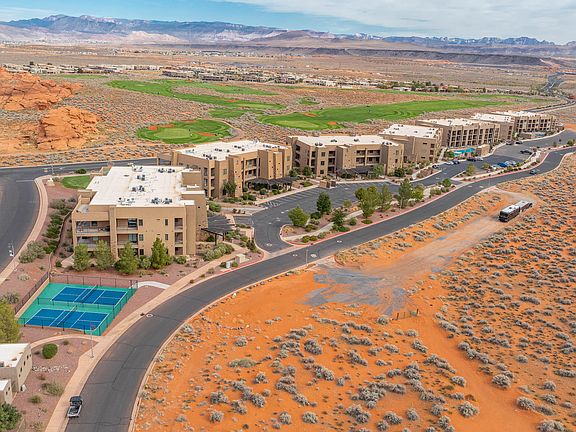 This unit is a rare opportunity on the ground level with two en suite bedrooms in addition to the primary bedroom. The unit also comes with 2 numbered underground parking spaces and a storage unit. It is a beautifully kept unit for either your own personal use, a great income property, or both. The North side faces the beautiful sandstone outcroppings on the Sand Hollow golf course. The South side is just steps away from one of two swimming pools, spa and pickleball courts. This unit is being sold fully furnished. A great turn key investment property!