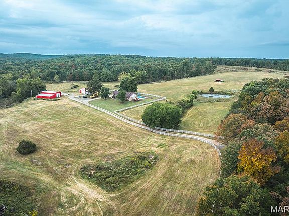 Discover 110 acres of rolling beauty in St. Francois County, featuring a perfect blend of pasture, woods, and panoramic views. This 3, 3-bath, 2,841 sq. ft. brick farmhouse offers plenty of space with a partially finished basement, making it ideal for family living or a country retreat. The property includes multiple barns suited for work, storage, or recreation, and a pond that adds charm and function. With 12 acres of open, farmable ground and 100 acres of mature woods, this land is perfect for a variety of uses—from raising livestock to enjoying premier hunting. Deer and turkey are abundant, and the wooded acreage provides endless opportunity for outdoor recreation. A steady breeze and wide-open views create the ideal setting for peaceful country living, while still being within reach of town conveniences.