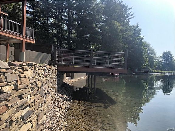 Beautifully remodeled/rebuilt property- both the house and the surroundings! Everything from new retaining walls, lake wall, siding, roof and lakeside "facelift" to a new deck over the water, new septic system, new bathrooms & more! Simply a gorgeous setting on one of Central New York's best small lakes... Bradley Brook Reservoir. The main floor offers a completely open floorplan with three sliders to the deck overlooking the lake, plus new full bath w/ laundry. The 2nd fl. provides a 2 BR set up OR a 2nd family room with attached 1/2 bath and big BR with attached full bath. The 3rd fl. loft BR is big enough for a bunk room- 2 twin beds fit nicely with room for more. Mechanicals all re-done & the basement "control room" houses electrical, etc, with convenient lakeside storage. Must see!