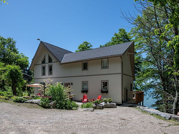 A RARE OPPORTUNITY TO OWN ONE OF LAMBTON SHORES' MOST EXCLUSIVE BEACHFRONT ESTATES | 222 FEET OF PRIVATE SHORELINE ON AN ACRE OF PRISTINE, SECLUDED BEAUTY. Perched on a natural cliff and surrounded by lush greenery and mature trees, this property offers breathtaking scenery, lake views, and year-round comfort. This beautifully updated and maintained 3-bed, 2-bath home is flooded with natural light and lake views from every angle. The main floor features expansive windows, sliding doors to a wraparound deck, a cozy living room with a fireplace, main floor laundry, and a full bath. Upstairs, the spacious primary bedroom offers panoramic lake views and a stunning skylight ensuite bathroom. A secondary bedroom includes a private balcony overlooking the water. Your third bedroom features a beautiful, expansive skylight whether you use it as a home office or a cozy bedroom, you'll enjoy the serene views all day long. The walk-out basement is unfinished, offering endless potential for customization. Major updates include roof + 2 skylights (2022 with transferrable warranty), furnace & A/C (2020), and ravine & rock wall reinforcement (2019 & 2021). Two beautiful lookout points for enjoying sunrises and sunsets. The only property with its own private boat launch - for all your water toys. The expansive lot has been cherished for family gatherings, yoga sessions, and even camping offering a unique lifestyle experience surrounded by nature and privacy. There's endless parking available, perfect for hosting friends and extended family. Just minutes from the town of Forest, offering shopping, Community Health Centres, schools, parks, golf courses, and farmers markets. Enjoy small-town charm with proximity to Grand Bend, Sarnia, and Lake Hurons most picturesque shoreline. Private shoreline with no public access - limited deeded passage preserves exclusivity. The place you feel the moment you arrive.