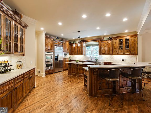 Nestled on a picturesque cul-de-sac in prestigious Sandy Springs, this exceptional custom home is a true masterpiece-now featuring a newly renovated gourmet kitchen with luxurious quartzite countertops, a stylish new tile backsplash, and a sleek new gas cooktop. Designed for both everyday comfort and grand entertaining, this home offers a backyard paradise complete with a heated PebbleTec saltwater pool, thrilling water slide, and bubbling spa-your private resort for relaxation, fun, and unforgettable family gatherings. Step inside to discover interiors that exude elegance and craftsmanship, with soaring ceilings, exquisite moldings, and refined architectural details throughout. The two-story foyer opens to a richly paneled study with a cozy fireplace-ideal for remote work-and a banquet-sized dining room perfect for hosting special occasions. The gracious living room impresses with arched windows and a dramatic fireplace, creating a warm and welcoming atmosphere. At the heart of the home, the newly updated kitchen is a chef's dream. In addition to the fresh quartzite counters and tumbled marble backsplash, it boasts a center island with breakfast bar, premium stainless steel appliances including double ovens, and a spacious walk-in pantry. The sunlit breakfast area flows into the keeping room, where a stacked stone fireplace and custom built-ins overlook the lush backyard. Step outside to an expansive porch and deck-ideal for dining al fresco or relaxing while enjoying the serene, fenced yard. The main level also features a private ensuite guest bedroom, two elegant half baths, and a mudroom with direct access from the three-car garage. Upstairs, the luxurious owner's suite serves as a true retreat, with a tray ceiling, sitting area with fireplace, and convenient morning kitchen. The spa-inspired bath includes a double vanity, oversized shower, jetted tub, and a custom-designed walk-in closet. Three additional ensuite bedrooms offer comfort and privacy, and a large bonus room provides flexible space for a playroom, media room, or additional living area. The terrace level is designed for entertaining and multi-generational living, complete with a full kitchen, family room with fireplace, home theater, wine cellar, bedroom and full bath with sauna, exercise room, game room, recording studio, and an additional half bath. Walk out to the beautifully hardscaped backyard, where a spacious stone terrace, heated pool, spa, bocce ball court, and outdoor fireplace create the ultimate outdoor oasis. Located in the award-winning Heards Ferry Elementary and Riverwood High School districts and close to Atlanta's top private schools, this one-of-a-kind estate offers convenience to premier dining, shopping, City Springs, Chastain Park, and major interstates. This home truly offers the perfect blend of luxury, comfort, and family-friendly amenities-an extraordinary opportunity not to be missed. Seller is a licensed real estate agent in the state of Georgia.