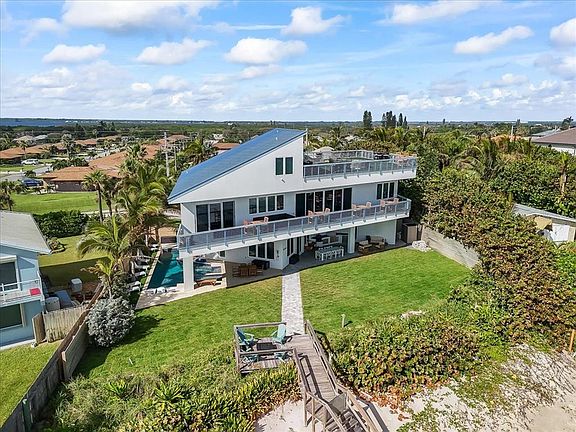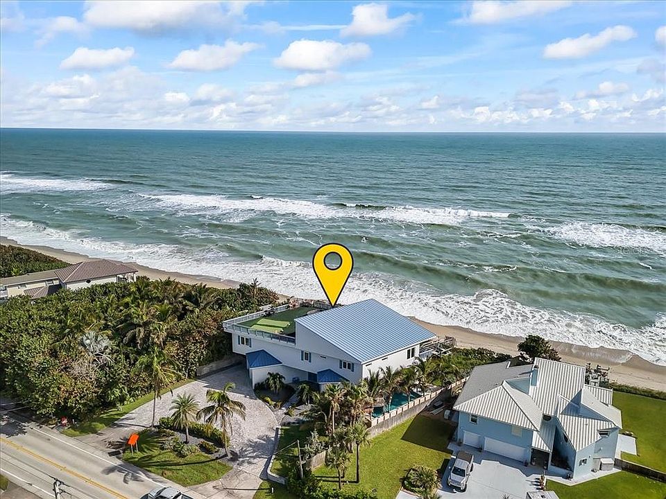 Welcome to the ultimate oceanfront flex on Florida’s iconic Space Coast. This is not just a home, it’s a statement. A 6-bedroom, 6-bath modern coastal estate, offering 4,761 sq. ft. of elevated luxury and over 100 feet of direct ocean frontage on the sands of Melbourne Beach. Every angle of this property is designed to capture jaw-dropping, unobstructed water views. Step outside to your brand-new resort-level pool and spa, complete with a fully equipped summer kitchen, perfect for hosting dinner parties under the stars or fireside evenings with friends. But the real showstopper? A 2,200 sq. ft. rooftop entertainment deck with commercial-grade tile, private putting green, and panoramic Atlantic-to-river views. Sunrise with coffee, sunset with champagne, every day. Watch the thrill of rockets and satellites launch live from the comfort of your backyard. And here’s the power move this property allows DAILY rentals. That means luxury short-term income on demand, making it not just a dream residence, but a serious revenue-generating asset. Whether you’re looking to live oceanfront at the highest level or capitalize on a trophy Airbnb investment, this Melbourne Beach masterpiece checks every box.