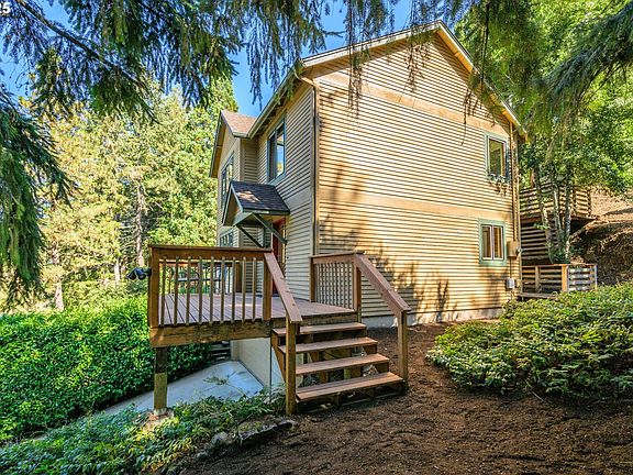 Sunset views! What a sweet home perched in the South Hills, close to schools, shopping, Ridgeline Trails and more. This house is rock-solid and absolutely charming inside. Its efficient layout and good storage makes the home feel bigger than it is. Birch hardwood floors and wood casement windows offer a rich vibe. One flows easily from the living room to kitchen and dining area, and is surrounded by great light and views out every window. There is a bedroom and full bath on the main level. Upstairs the lofty primary bedroom is of good size and has a generous walk-in closet. A shared bathroom is roomy with separate tub and walk-in shower. Down the hall is the second bedroom and a dedicated laundry room. All carpet is brand new. Imagine yourself on the front deck having coffee, or dining at sunset! Let entertaining spill out to the deck out back! The large terraced backyard is a lovely natural backdrop with mature oak trees. Count on the outdoor spaces--no matter how you use them--to be serene and private. Not all garages are created equal! This 2-car is oversized and offers plenty of storage. There is an interior stairwell from garage to the main level. Come see this compelling property, at a nice price!