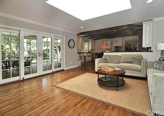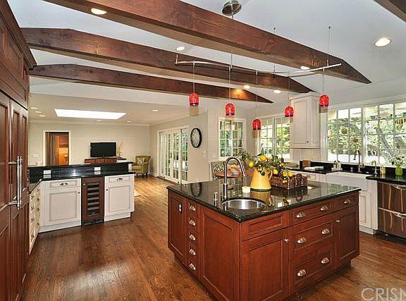 JUST REDUCED! Welcome to this inviting Amestoy 1-level Estates property, located at the end of a cul-de-sac at a grand, circular driveway. This traditional, contemporary property has approx. 4 bedrooms, 2.75 bathrooms; new carpeting and recently finished, gleaming-hardwood floors. The master suite includes French doors, which amount onto a tranquil courtyard. Bath-wise, the plumbing features a Carrera Marble finish with a large, spa tub; over-sized, transparent shower with 2 sinks, and an automatic, custom toilet. The living room presents in a grand scale with a fireplace, French doors, and recessed lighting. The newer kitchen incorporates a "Wood Mode" chef's kitchen with center island, side-by-side SUBZERO fridge & freezer, dual-stainless steel dishwasher, breakfast bar, and built-in, leather-seated breakfast table. Exterior-wise, the backyard has a newer sports court, brick-covered terrace; mature, abounding trees; and lovely lawn area with a covered gazebo arranged for a gas BBQ. Not to mention there's a titanic-sized, gated pool (with 2 water heaters). So, if you're ready to be apart of this integrated lifestyle, come visit for yourself.