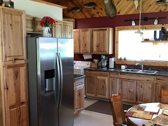 Well-maintained yr round cabin with many updates: new hickory kitchen cabinets, new appliances, new roof in 2016. Other features include a 12'x12' sun room, detached 2-car garage (2013) w/ bunk room, 14'x16' wooden deck with patio tent, 20'x18' storage shed with lean-to and AC wall unit. Near Eau Claire Lakes chain, County Forest and motorized recreation trails.