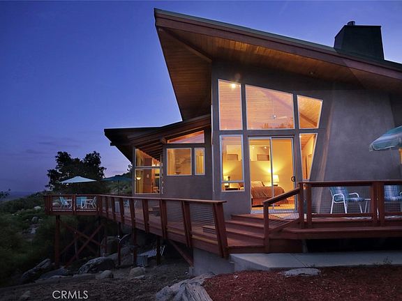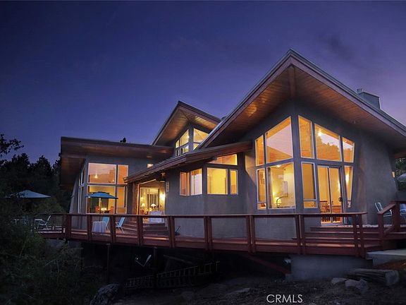 SPECTACULAR VIEWS, EXQUISITE ARCHITECTURE, SECLUSION, TRANQUILITY. Designed by David Lilieholm, this 3 bedroom 2 bath home (plus loft) is located in Idyllwild's most desirable area. A striking stucco home with metal roof set back from the street, it was designed to blend into the boulders and manzanitas of the Idyllwild chaparral. Dramatic interior spaces with angled vaulted cedar ceilings, oak flooring, and walls of glass highlight this home. A large, open dining area overlooks the great room, with its dramatic fireplace and panoramic views of the valley and mountains. The kitchen features commercial grade appliances, tall cherry cabinets and ample granite counter space. Light floods the master suite, with its vaulted ceiling and fireplace. Spectacular views can even be enjoyed from the glassed-in shower, tub, and 2 sinks found in the master bath, which also features 2 walk-in closets. 1,300 square feet of redwood decking provide vantage points from which you can savor the wildflowers and wildlife that populate the 1.9 acres that stretch to the national forest. Other details: propane forced air heat, central air conditioning, attached 4 car garage, and separate laundry room.
