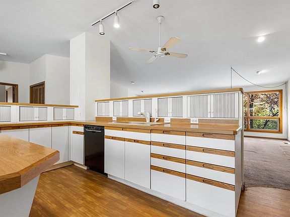 Unique property with character, ready for a makeover. When you step into this house you will be inspired with all the possibilities. Check out this 3 bedroom 2 bath mid century modern ranch. Enjoy scenic views, vaulted ceilings, and the expansive primary suite. Notice the open floor plan and timeless white kitchen with plenty of storage. Discover the primary suite complete with multiple closets, private full bath, and views of nature. Wander downstairs to reveal a wonderful opportunity for multi-generational living. Complete with full bathroom, kitchenette or wet bar, rec room, two sizable bedrooms, and a walk-in storage area in the fully exposed basement. In the back yard, enjoy privacy in the enclosed porch and wooded yard. A little TLC, including new flooring and some landscaping, will transform this house into a beautiful home. Roof 2017 No FHA or VA property is being sold AS-IS but priced to sell