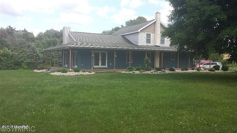 Beautifull updated 2 story home on 2,4 Acres between Caledonia and Middleville. Main Floor Master and Laundry, 3 Large Bedrooms, (Could easily be 4), 2.5 Baths, Huge Kitchen with Large Walk in Pantry and Newer Appliances, Large Dinning room, Huge Living room/Great room with vaulted ceilings and 3 french doors leading to Wrap-around porch, Main floor Master suite has large walk-in closet and dual sinks and walk-in Shower, Secand floor has 2 additional Large bedrooms. Walkout lower level is unfinished with huge potential for more square footage. Medroom at entrance by driveway, Covered wrap around porch leads to a large deck. 14x16 storage shed on north side of home is included. Call today for a private showing!