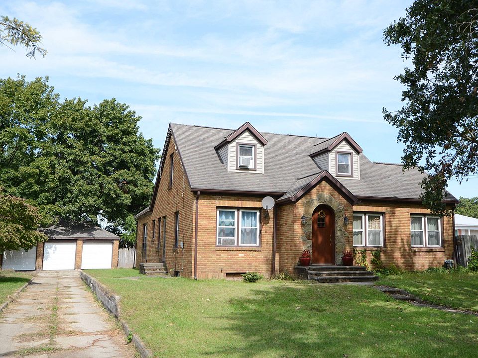 Discover timeless character and modern comfort in this beautifully crafted all-brick home featuring 4 bedrooms and 1.5 baths. Inside, arched doorways and beautiful hardwood floors set the stage for an inviting open layout. Natural light floods the sunroom, an ideal space for a home office, cozy reading nook, or game room. The spacious dining room, complete with French doors, opens to a nice deck and inground pool—perfect for entertaining or relaxing. The kitchen blends warmth and function with tiled floors, generous cabinetry, and a bright eat-in area. Main floor laundry makes multi-tasking easy. Two main-level bedrooms share a full bath, while upstairs offers two generously sized bedrooms with hardwood floors and charming built-in nooks. The unfinished basement provides endless possibilities for additional living or recreation space. Outdoors, enjoy the deck, patio, and inground pool, along with the convenience of a detached 3-car garage. Ideally located near schools, downtown, and local dining.