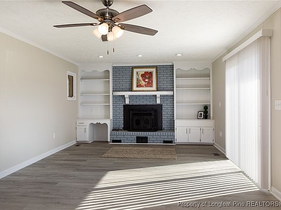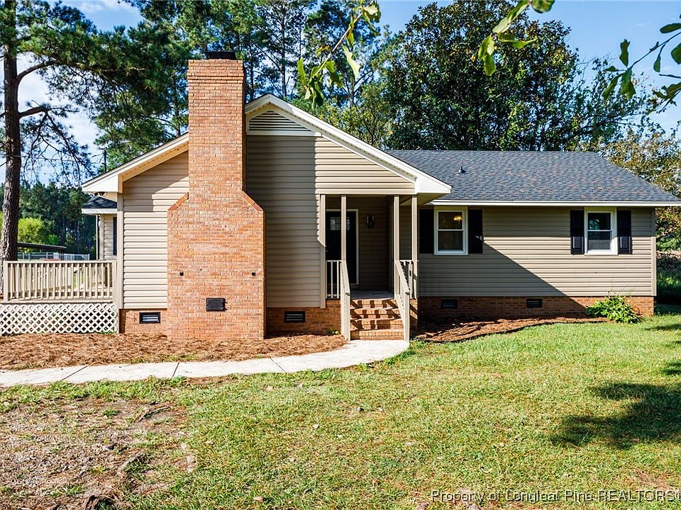 Exceptional renovation with so much to appreciate! Country living convenient to I-95 to get to the beach or Fayetteville/Fort Liberty. All new roof, HVAC to include ductwork, windows, exterior doors, flooring, paint, fixtures, bathrooms, water heater, bathrooms, vapor barrier, and appliances! Attractive kitchen features SS appliances, granite counters, LVP flooring, built ins with a display cabinet, and subway tile backsplash. Beautiful living room highlighted by built-ins and brick around the fireplace. Side deck located outside the living room via a sliding glass door. Pretty vanities and tile work in both bathrooms. Septic tank was pumped this year. Storage shed with electricity in the back yard. You're going to love this house!