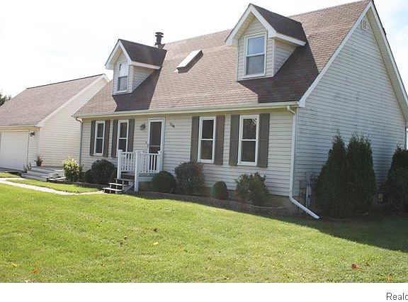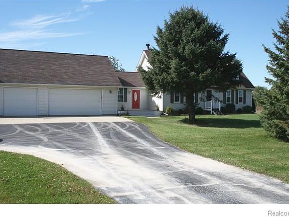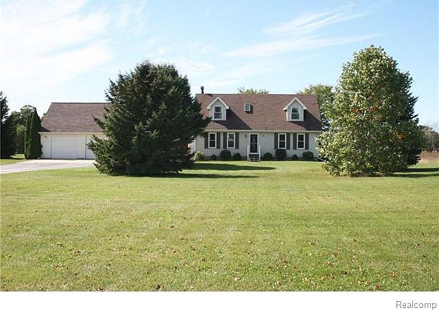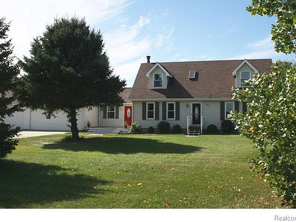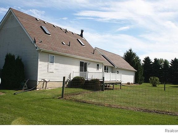 Cute Cap Cod style home on almost 6 acres of private land. Doorwall in Breakfast area/Dining Room looking out onto the deck. 4 Bedrooms and 2 Full Baths, skylights, natural fireplace in the Living Room, all appliances included even the washer and dryer! Large 3 car attached garage and pole barn. Clean and neat home.