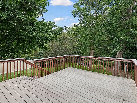 Rare opportunity to own a clean, nicely updated, 4 BR/2 Bath home with 3 car garage directly adjacent to 45 acre Hidden Valley Park. You will love the exterior updates including a new, architectural shingle roof (2020), new James Hardie siding with maintenance free soffits and new gutters (2021), new Andersen 400 series windows (2021), and a concrete driveway. The two-tier, low-maintenance deck overlooks a beautifully landscaped, wooded, and fully-fenced back yard with dog kennel, storage shed, playhouse, play set, trampoline, and fire pit. The interior has new carpet throughout (2024), 4 bedrooms, two walk-in closets, a jack-and-jill bathroom off the primary bedroom with a 3/4 bath in the lower level, and a spacious 15 x 30 ft family room with fireplace, wet bar, and mini-fridge. The kitchen features oak cabinetry, an island, eat-in kitchen space, and newer stainless steel appliances. A newer, forced-air furnace with central air makes the home comfortable regardless of the season. The attached, 3-stall garage has ample, smartly designed storage space. Living room, family room, and bedroom photos are virtually staged.