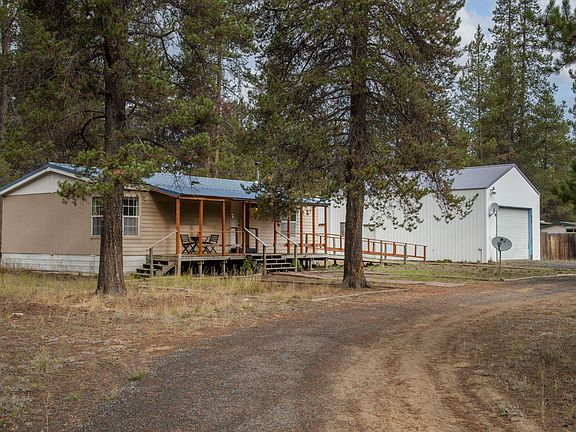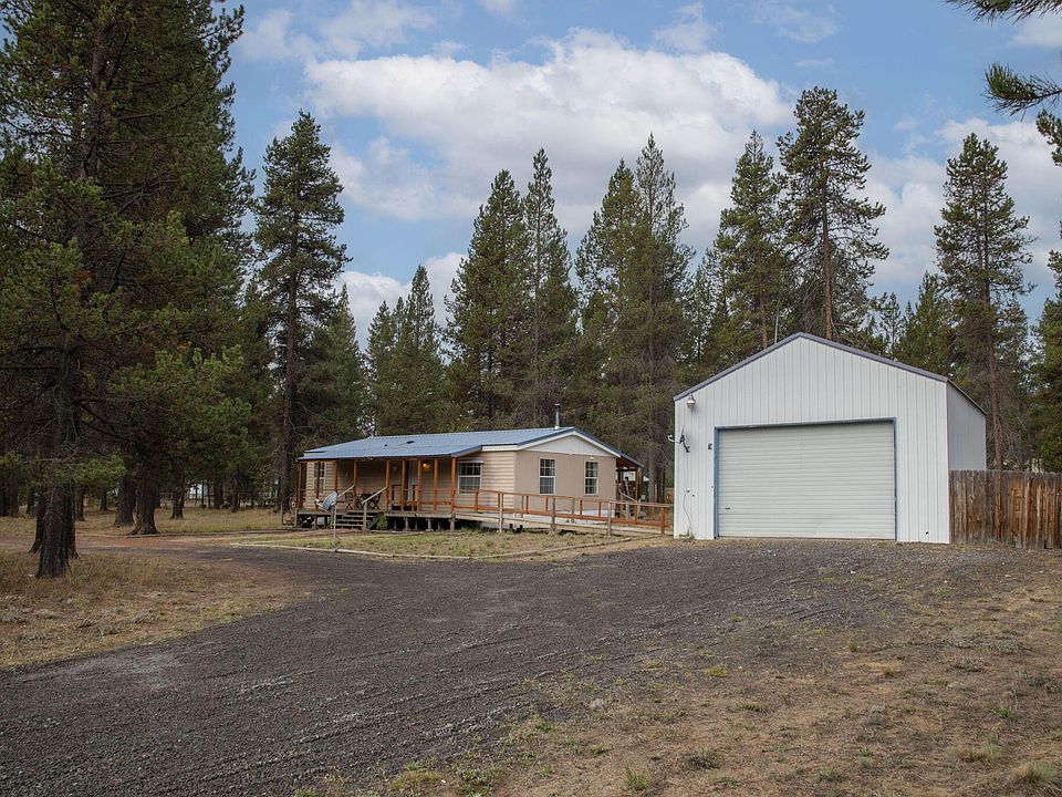 Enjoy calling this 2 bedroom, 2 bathroom home yours! A metal room and corner Lot with a circular driveway that leads to a large 24ft x 34ft Shop/Garage plus attached 20ft x 12ft shed. The exterior is fenced from the neighbors and has plenty of room to park the toys. Inside, you'll find a functional floor plan with a kitchen skylight, spacious bedrooms, and a wood-burning fireplace.