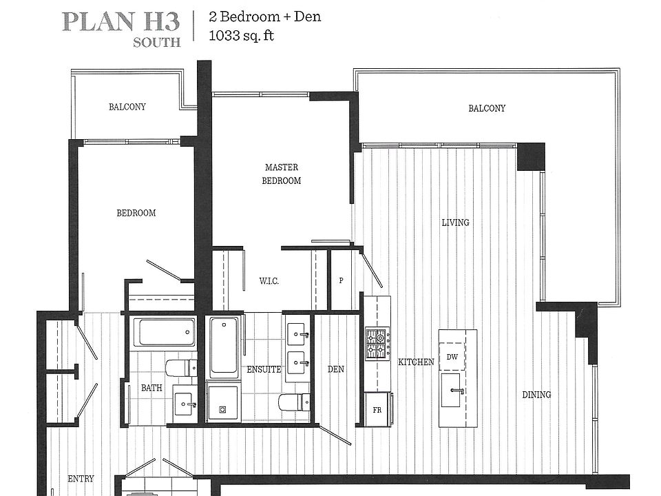 Corner suiteWrap around outdoor balconyPrivate balcony accessHardwood flooringAir conditioningContemporary kitchenKitchen island