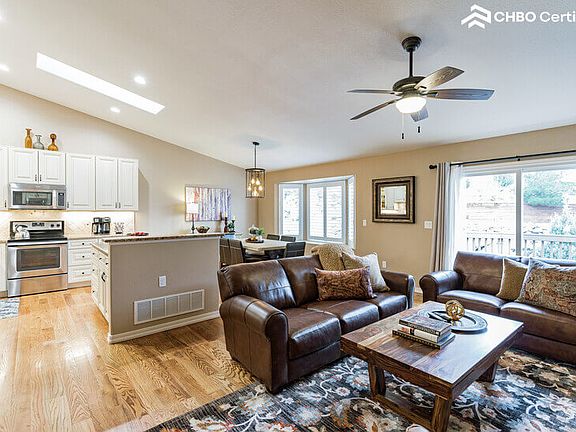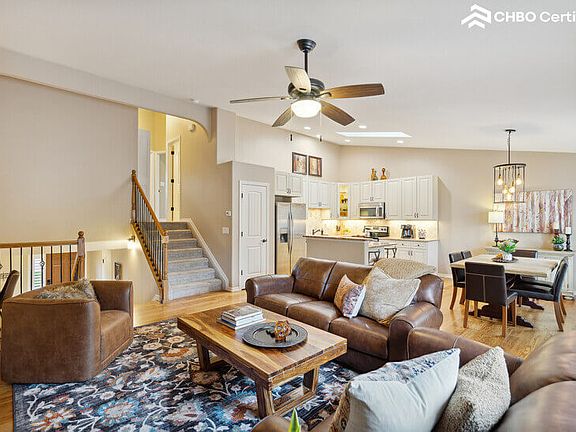 Reference CHBO ID: 25529 This FURNISHED rental is advertised by the CHBO Rental Program - Corporate Housing by Owner, Inc. Check our website for furnished rentals throughout the United States. This property may accept pets, depending on the type, breed, and weight. Approval is subject to owner discretion. Colorado Springs Furnished Housing in Quiet Gated Community Are you searching for a Colorado Springs rental for the family? This townhouse offers 1,900 square feet of space for a business trip or relocation. It is CHBO-certified and CHBO-complete with utilities included in the rental price. The home has three bedrooms and three bathrooms with pets negotiable. Many great employment options are in the area. Mountain Metro Transit, Downtown Colorado Springs, and the Colorado Springs Airport are all within 11 miles. Peterson Air Force Base, 24-Hour Fitness, St Francis Airport, and UCCS are even closer for a quick commute in the morning. As far as the amenities provided, you can expect 55" and 65" smart TVs with hardwood floors and granite throughout the dwelling. The furnished housing also comes with under-cabinet lighting, several ceiling fans, and a large skylight so you can enjoy lots of sunlight. There is also a washer and dryer with a steam feature for your convenience. In the living room, you'll notice tasteful decorations, big windows, wooden coffee tables, and leather seating options. The living area is open so you can chat with people in the dining room or kitchen while reading a book or watching a film on one of the comfortable sofas or loveseats. A fireplace lights up the room and offers a warm glow for your evenings. The Colorado Springs rental has a charming dining room with a modern chandelier, a gorgeous table, and seating for up to six people. It's right next to the kitchen, which offers trendy white cabinets and stunning stainless steel appliances. The island doubles as a breakfast bar with two stools for informal dining. For those who work remotely, you'll find a cozy office space up the stairs. It includes a deck and chair so all you need to do is add your laptop. Otherwise, the upstairs is filled with beautiful bedrooms. The master has a huge comfortable bed, seating, and an ensuite bathroom. It boasts a large vanity and a glass shower. The other bedrooms in the furnished housing are just as pristine and relaxing. Both boast queen beds on different levels of the home. You'll also have access to a second family room that has a television, comfortable seating, and a table. Colorful artwork adorns the walls and brightens up the space. For anyone coming into Colorado Springs, consider this gorgeous home in a quiet neighborhood. You'll have everything you need for your stay while being close to some of the most important locations in the city.