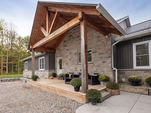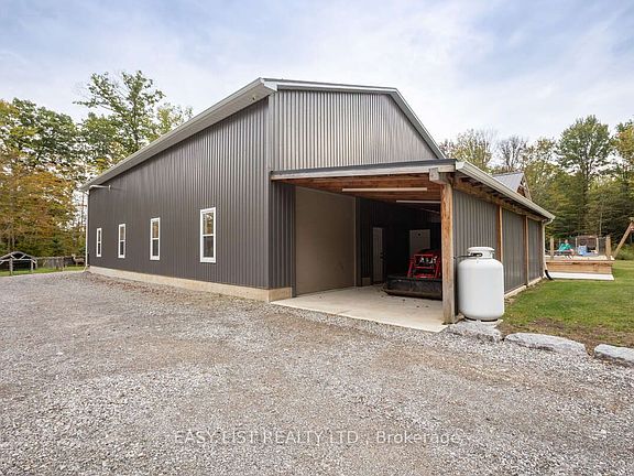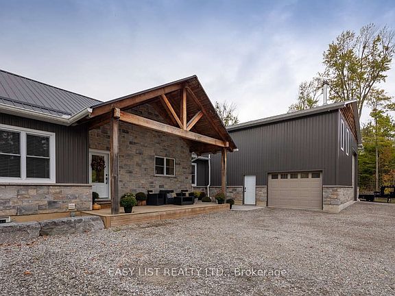 For more info on this property, please click the Brochure button. Welcome to 52896 Putman Rd, Wainfleet - the perfect country package tucked away in the woods, ideal for outdoor families or hobby farmers! Nearly 9 acres of paradise with frequent wildlife including deer, turkeys & birds. The 1,800 sq ft custom-built bungalow (2018) offers 3 bedrooms, 2 full baths, main floor laundry & 2pc bath off garage entry. Spacious kitchen & open concept living area with walkout to 30x30 half-covered deck & covered front porch. Primary suite features walk-in closet & ensuite with tiled shower, single vanity & makeup vanity. Additional bedrooms are generously sized with large closets. Finished basement adds 2 more large bedrooms with walk-ins, rec room & storage, making it a true 5-bedroom home. Attached 40'x60'x17.5' starting with a spacious mudroom perfect for coats, boots, and extra freezers, divided garage parking, heated shop with 14x14 & 10x10 OHDs, 2pc bath, dog room, fish cleaning station & walk-in cooler. Upstairs, a 900 sq ft fully finished mezzanine offers a man cave, wet bar, Pacific Energy wood stove, storage & home office overlooking the yard. Perfect for boats or business owners needing space for trucks, rigs and equipment. For hobby farming, enjoy a fully fenced paddock, chicken coop & goat barn. The backyard oasis boasts a stocked Japanese koi pond with armour stone edging, concrete firepit area & plenty of parking plus a fully serviced RV hookup. Don't miss this rare opportunity to own a one-of-a-kind country retreat!