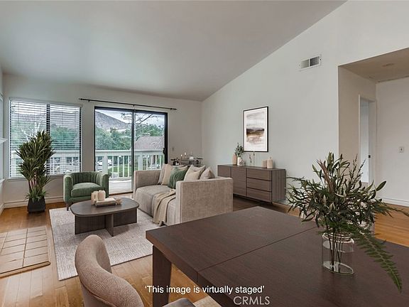 Priced to Sell! Don't miss this spacious 4-bedroom, 2.5-bath stand alone townhouse in the highly sought-after Country Vistas III community. This light-filled home features vaulted ceilings, hardwood floors in the living room and kitchen, wood-like flooring in all bedrooms, and tile in the bathrooms. The living room opens to a large balcony with peaceful views of the surrounding mountains, mature trees & community pool, perfect for relaxing or entertaining. The kitchen offers stainless steel appliances, gray quartz countertops, and plenty of cabinet space. Upstairs, the primary suite includes an en-suite bathroom and lovely mountain views. A second upstairs bedroom, office, or home gym & also features its own en-suite powder room for added convenience. Downstairs, you will find two additional bedrooms, a full bathroom, and direct access to a private outdoor living space for your guests or additional entertaining space. Other highlights include in-unit laundry, a detached two-car garage, and access to the community pool. Located in the award-winning Oak Park school district and just minutes from top-rated schools, shopping, dining, and a short distance to Malibu beaches. A wonderful opportunity with so much to offer!
