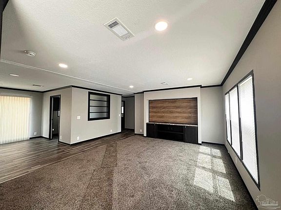 Georgeous 2018 28x56 Southern Energy - The Washington manufactured home located 1 mile from Interstate 10 access! Home boasts craftsman kitchen with island, complete with deep sink plus a pantry with a carriage door. Floor plan is split with huge open primary bath. Carpeting is new. All bedrooms have a walk-in closet.There is an alarm system present, but seller has no information and it is not currently monitored.