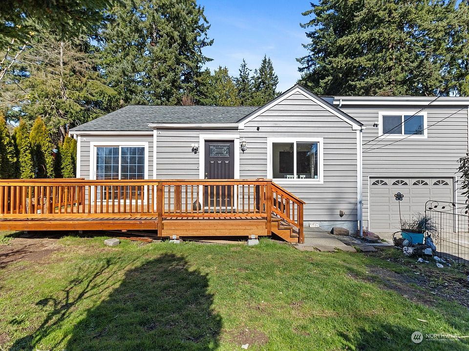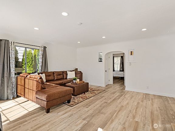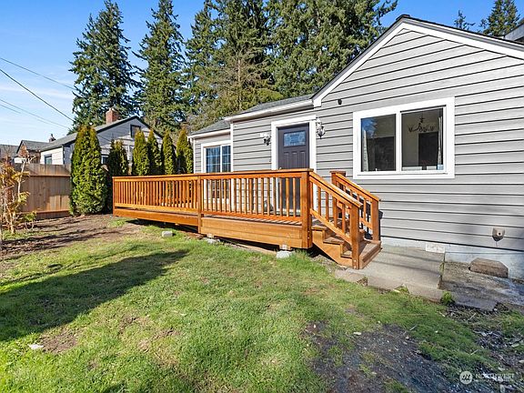 Remodeled and move-in ready! This exceptional mid Century 1946 homes offers 1405 Sqft. 2 bed room, 2 bath with an optional third bedroom upstairs with a sitting room and full-size bathroom. Creating a luxurious primary suite. New flooring across the house. Updated vanity in the bathroom. Ample space in kitchen with tons of storage space. Open concept when you walk in giving a modern touch from the beginning. New deck. Fully fenced back yard with the privacy you deserve, also backing up to a park. RV Parking. No HOA. Fantastic location walkable to restaurants/shopping and easy access to I-5, Boeing and transit.
